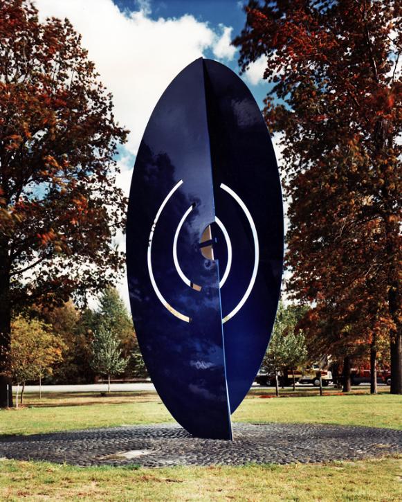 18'h x 7'w x 6'd 1991 Painted Steel, Stainless Steel, Stones